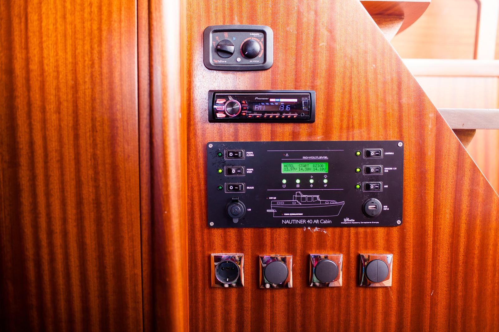 - gniazda ładowania telefonu 12 V, USB