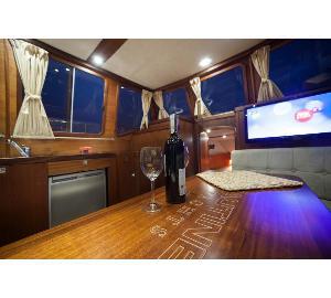 Przestronny, wygodny król houseboatów na Mazurach. Rodzinny, bardzo bezpieczny jacht motorowy . Wyposażony we wszystko by w pełnej autonomii spędzić udany, komfortowy urlop na wodzie. 2 stery strumieniowe, pełna wysokość stania w każdym miejscu na jachcie oraz mocny silnik stacjonarny - 80 KM to najistotniejsze atuty tego jachtu. -
