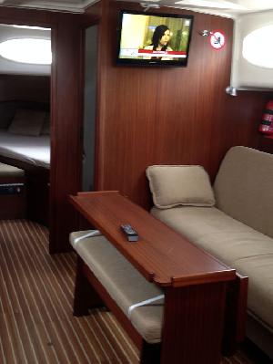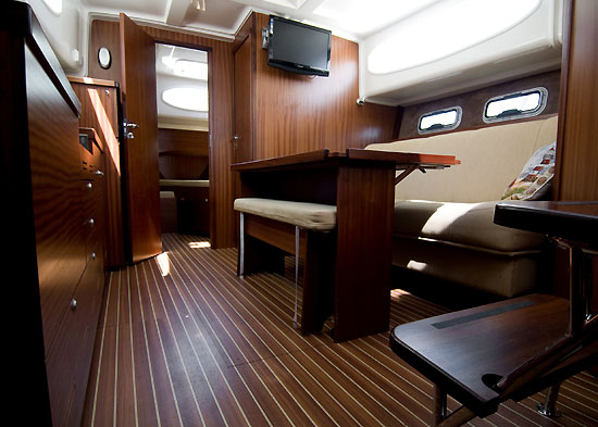 - składany teakowy stół w kokpicie